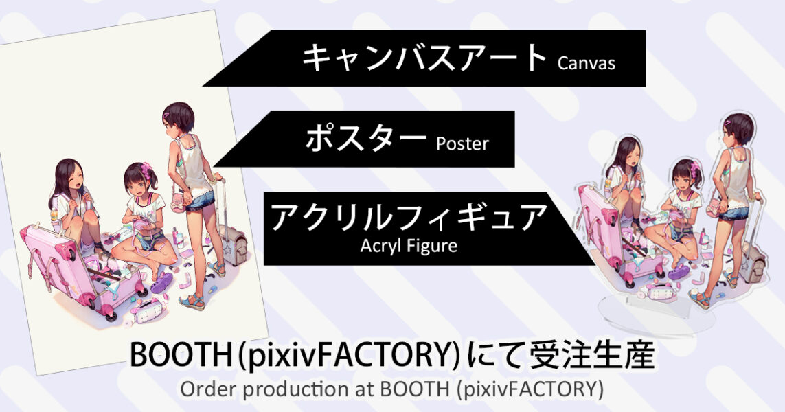 An adorable illustration of Yurika, Sana, and Miyako getting ready for their trip is now available as merchandise!